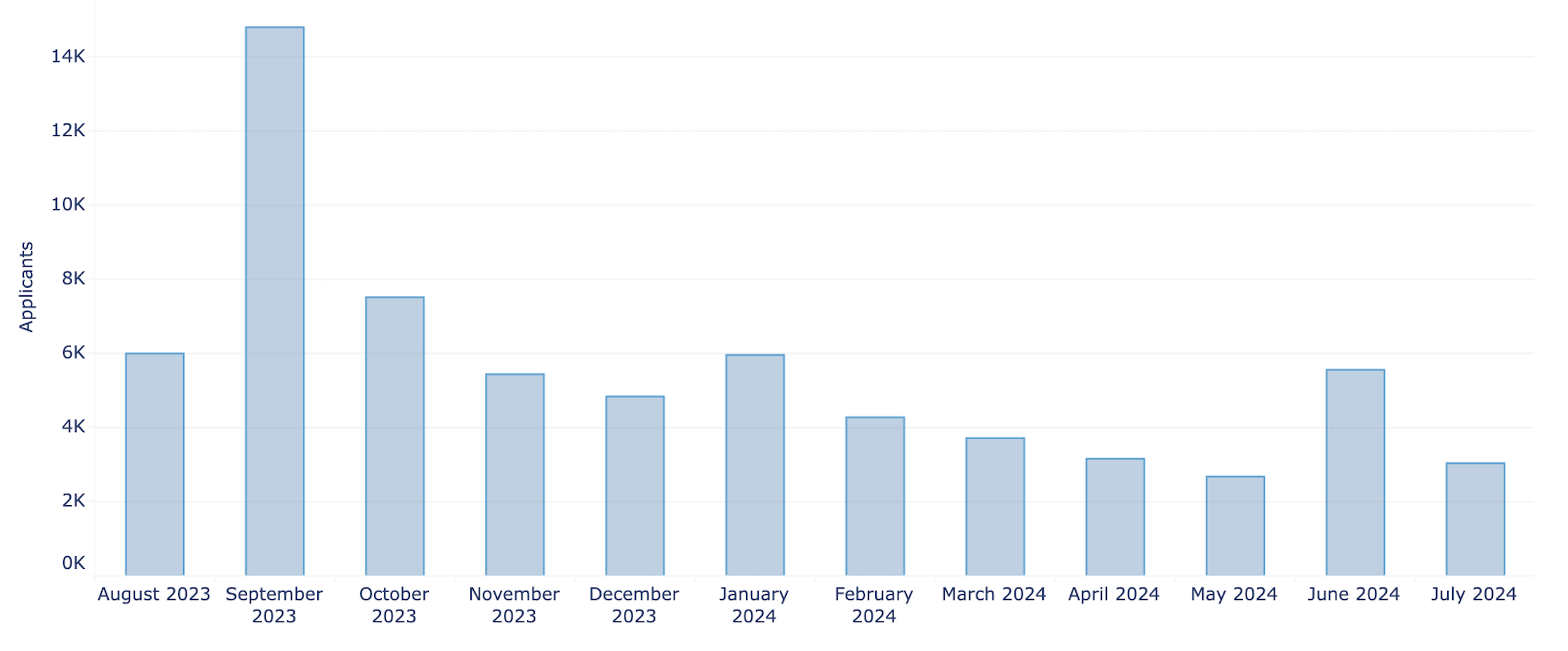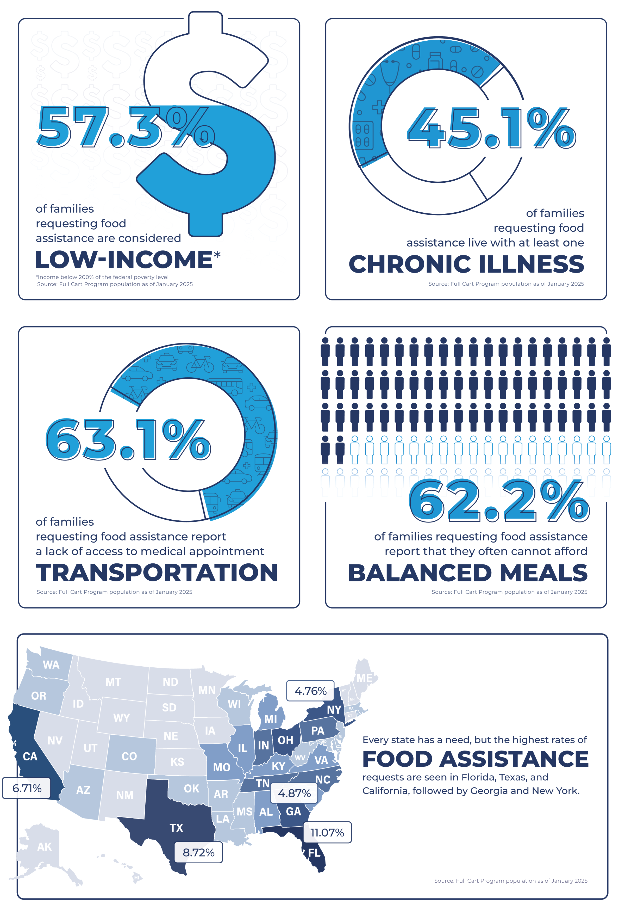 Families in need of food assistance apply through our Full Cart Virtual Food Bank. We have seen the following trends with the number of those who need help over the last 12 months.